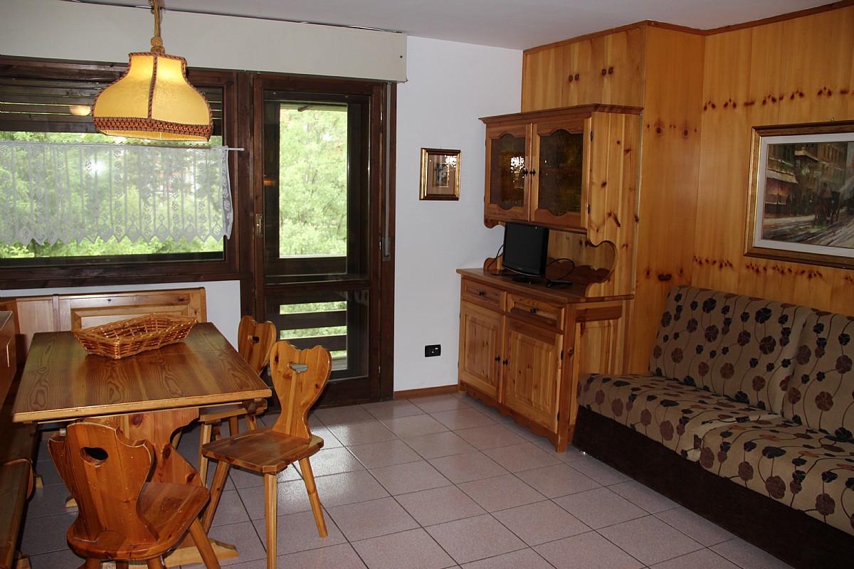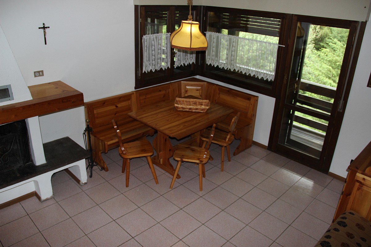 L'appartamento è situato al secondo piano del Residence il Cardo, a due passi dal centro di Canazei e disposto lungo la passeggiata nel bosco che collega il paese di Canazei con quello di Campitello.